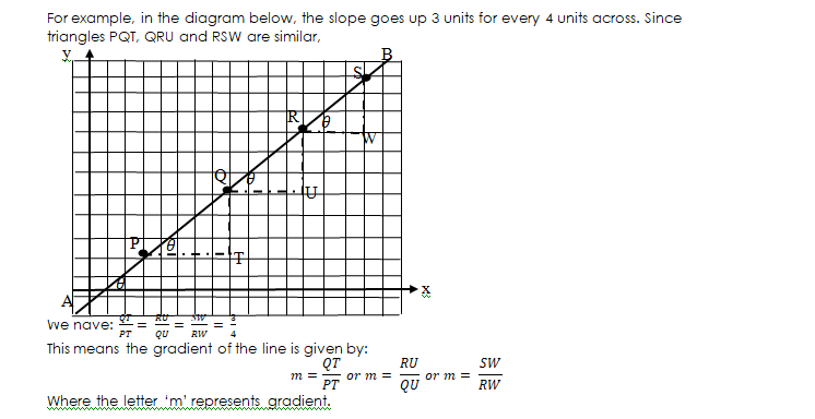 The gradient (or slope) of a straight line is a measure of the steepness of the line.
