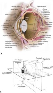 - Name three parts of the eye and their functions.