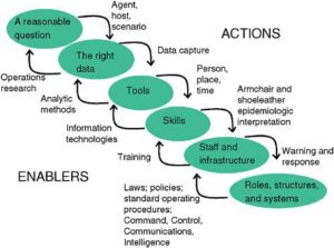 Surveillance means watching, recording, and analysing patterns of disease so that outbreaks can be detected early and stopped quickly. It’s like being a disease detective—tracking who gets sick, where, when, and why.