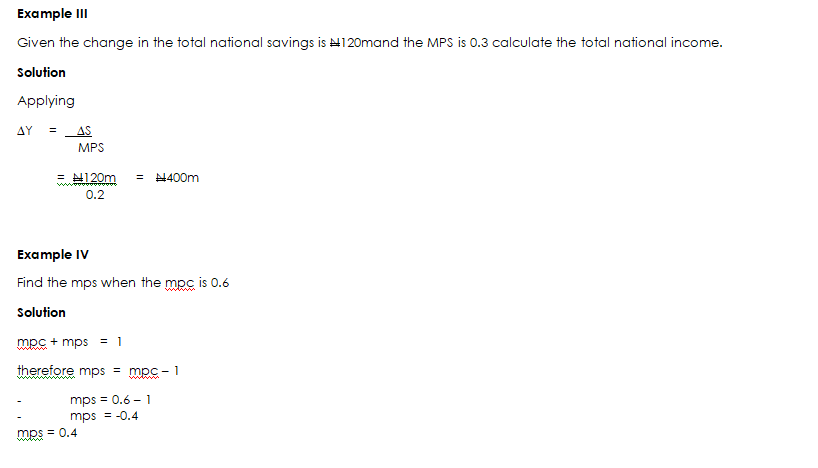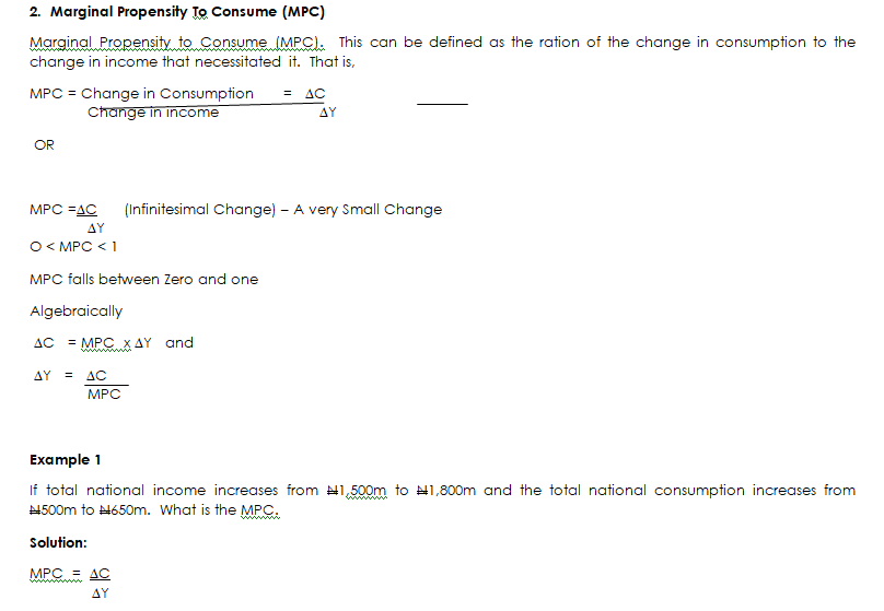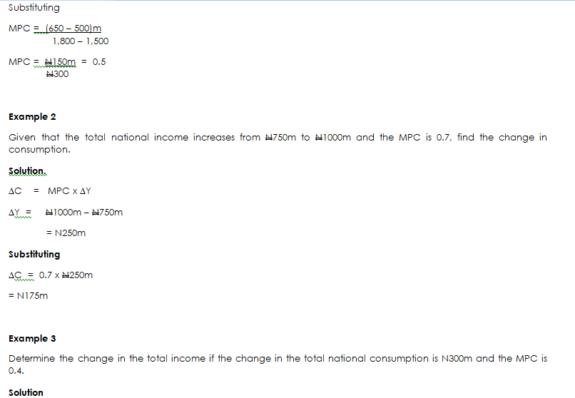 - Determine the change in the total national income if the change in the total national consumption is N600m and the mpc is 0.8