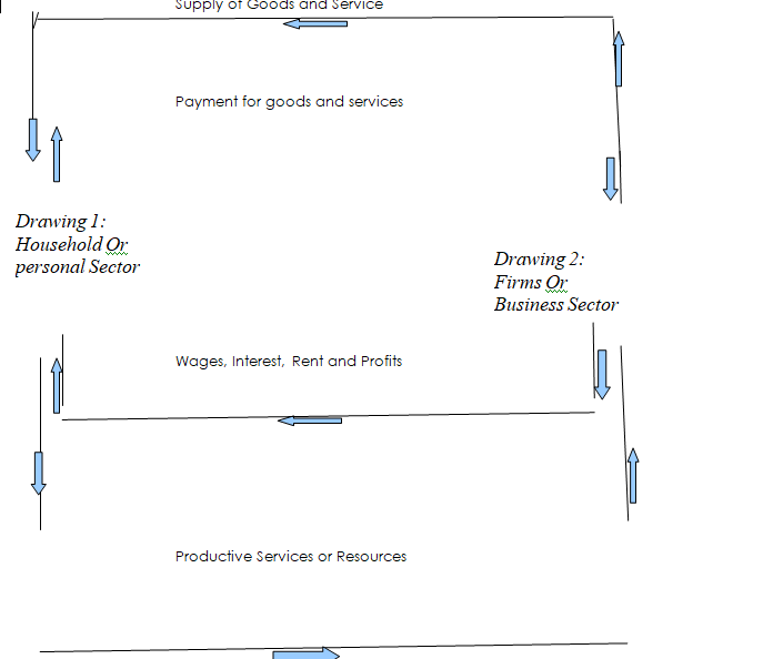 The household or the personal sector offers its labour services to the business sector or firms in the production of goods and services. The household is rewarded in form of wages, interest and rent which it spends on the consumption of goods and services produced in the economy.