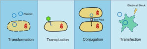 Let’s look at the three major methods: transformation, transduction, and conjugation.
