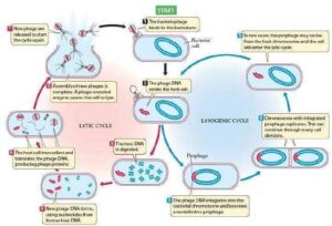This is the quick and destructive path. The virus enters a host cell, takes over, makes copies, and then bursts the cell open to release new viruses.