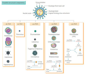 - Their basic structure includes genetic material (DNA or RNA), a protein coat (capsid), and sometimes a lipid envelope.